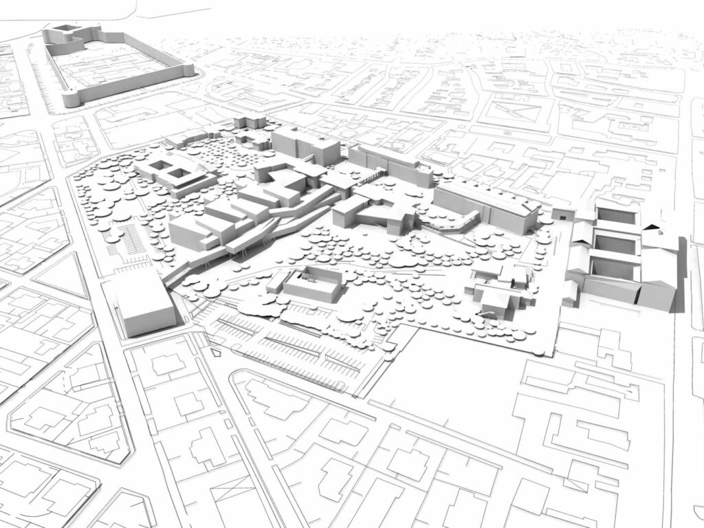 • Total area: approx. 9 ha, including 3.2 ha of public park and 1.8 ha of university courtyards