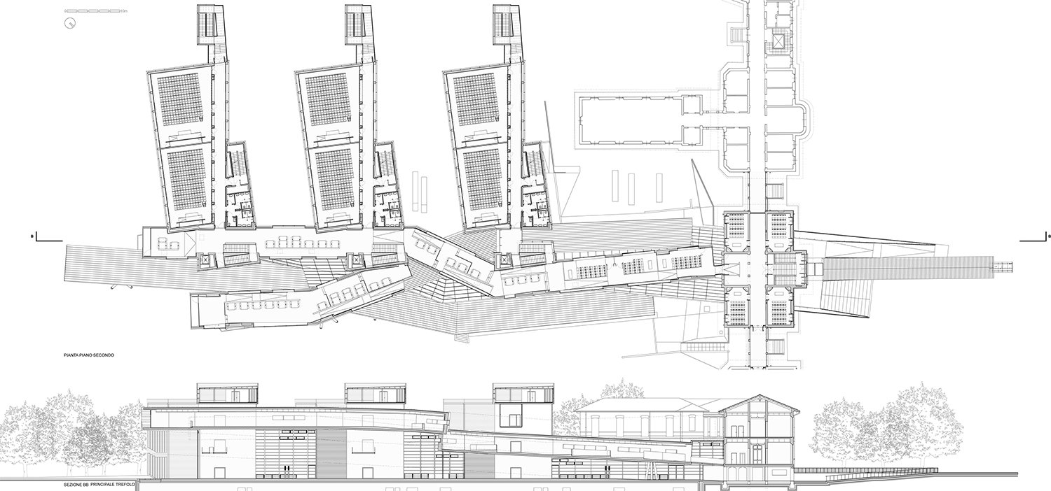 It also offers a replicable approach to converting large, decommissioned public facilities, especially those built in the decades after Italian unification - an extensive building stock located at the edge of historic centres, in that circular belt now crucial to reconnecting peripheral areas to the urban core.